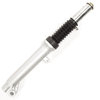 The right suspension fork in a motorcycle supports the front wheel, absorbs shocks from the road, and provides stability and control during riding, contributing to overall handling and comfort.