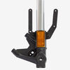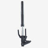 The right suspension fork in a motorcycle supports the front wheel, absorbs shocks from the road, and provides stability and control during riding, contributing to overall handling and comfort.