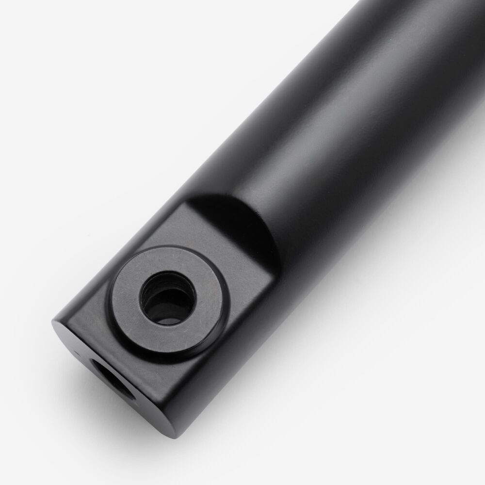 The right suspension fork in a motorcycle supports the front wheel, absorbs shocks from the road, and provides stability and control during riding, contributing to overall handling and comfort.