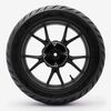 A front and rear wheel set on a motorcycle refers to the complete pair of wheels designed to fit the bike's front and rear axles.