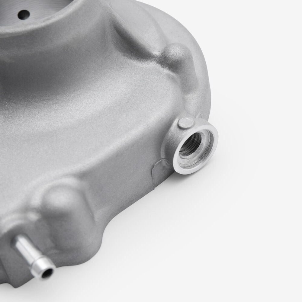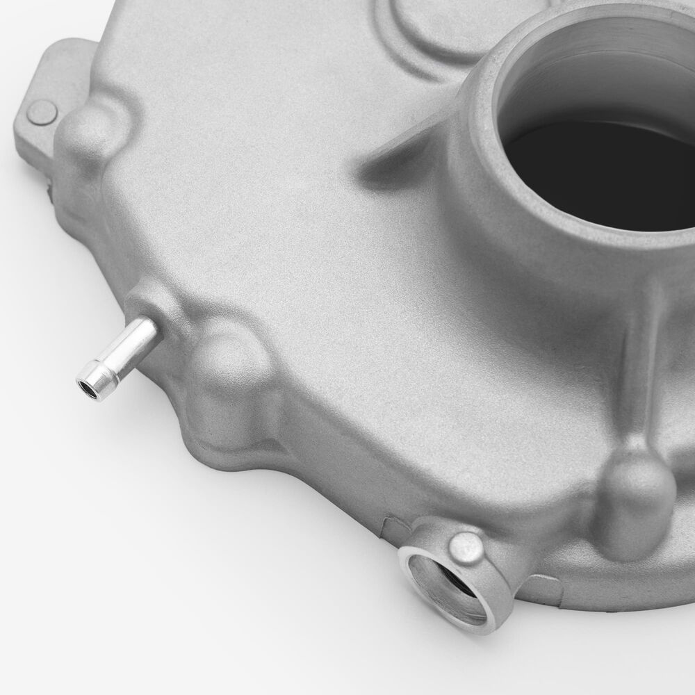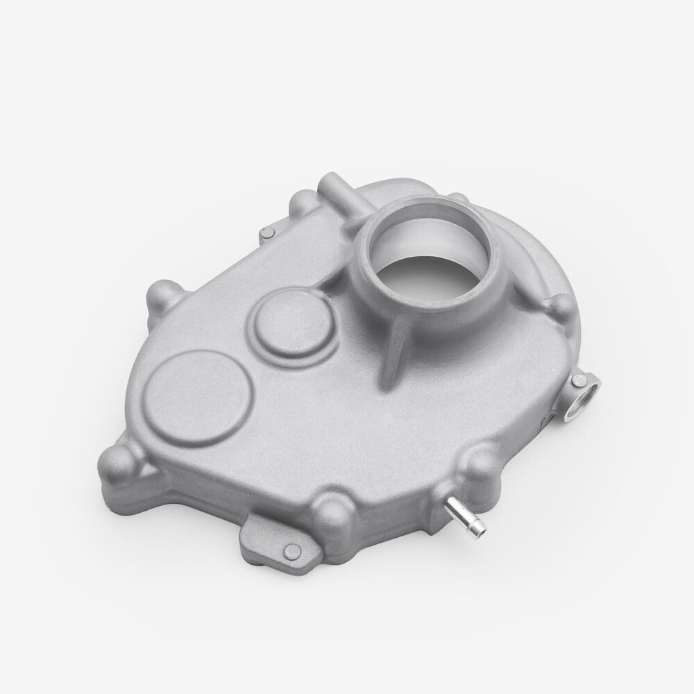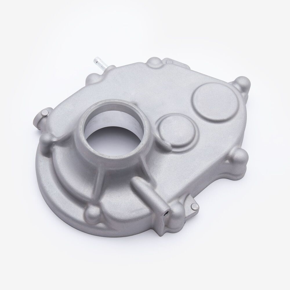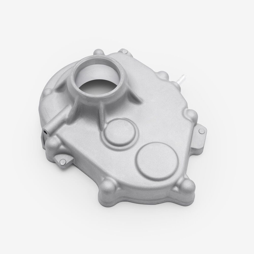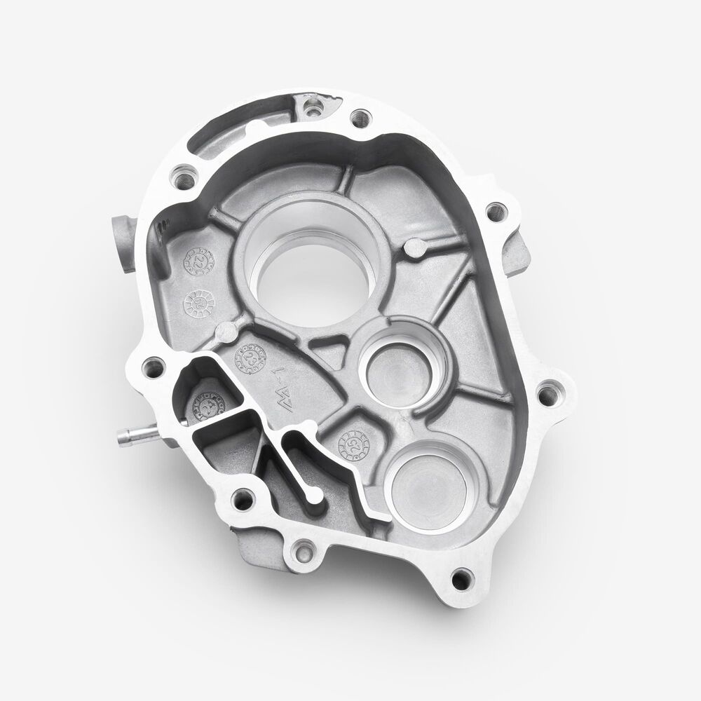 The gearbox casing in a scooter encloses and protects the gearbox components, housing the gears and shafts while ensuring proper lubrication and alignment for smooth transmission operation.