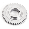 The kick start idle gear in a motorcycle engages with the kick start mechanism to facilitate the initial engine cranking.