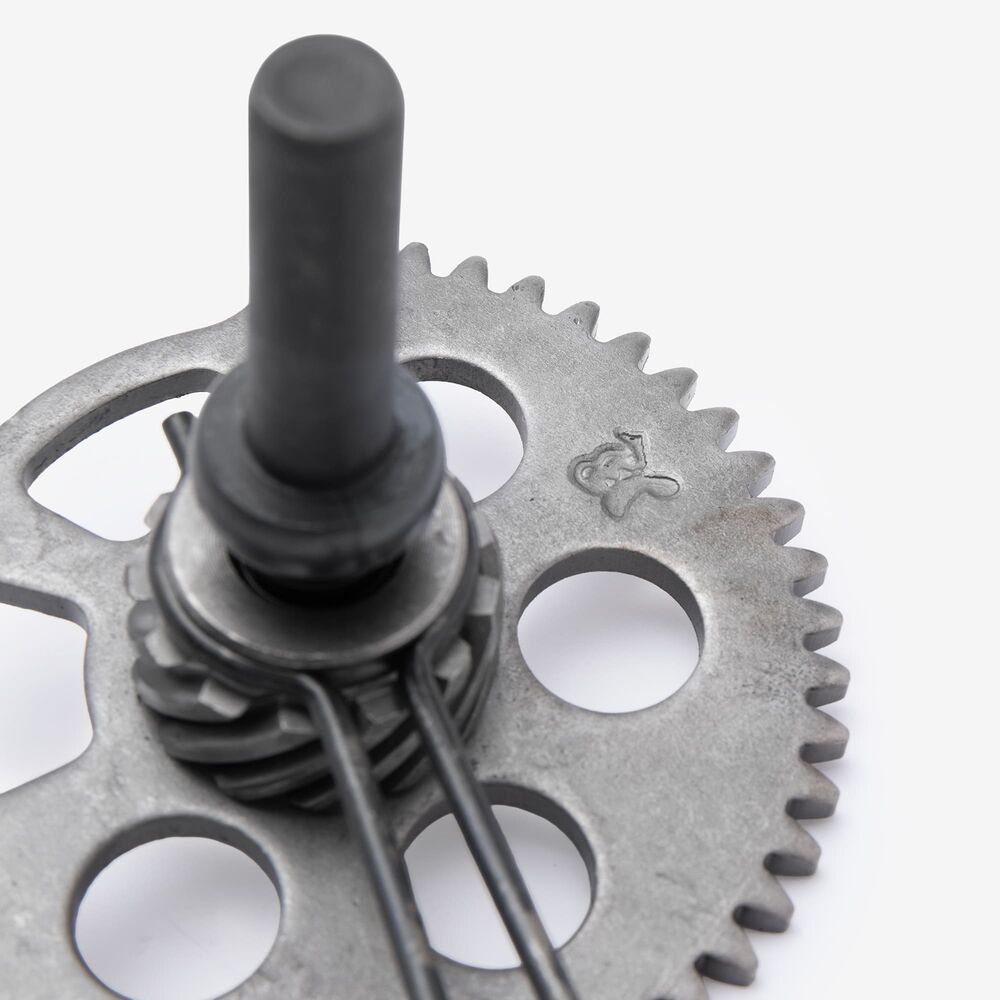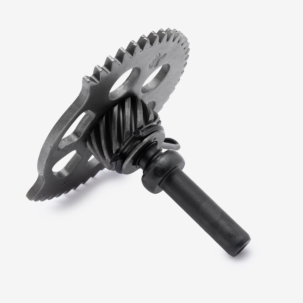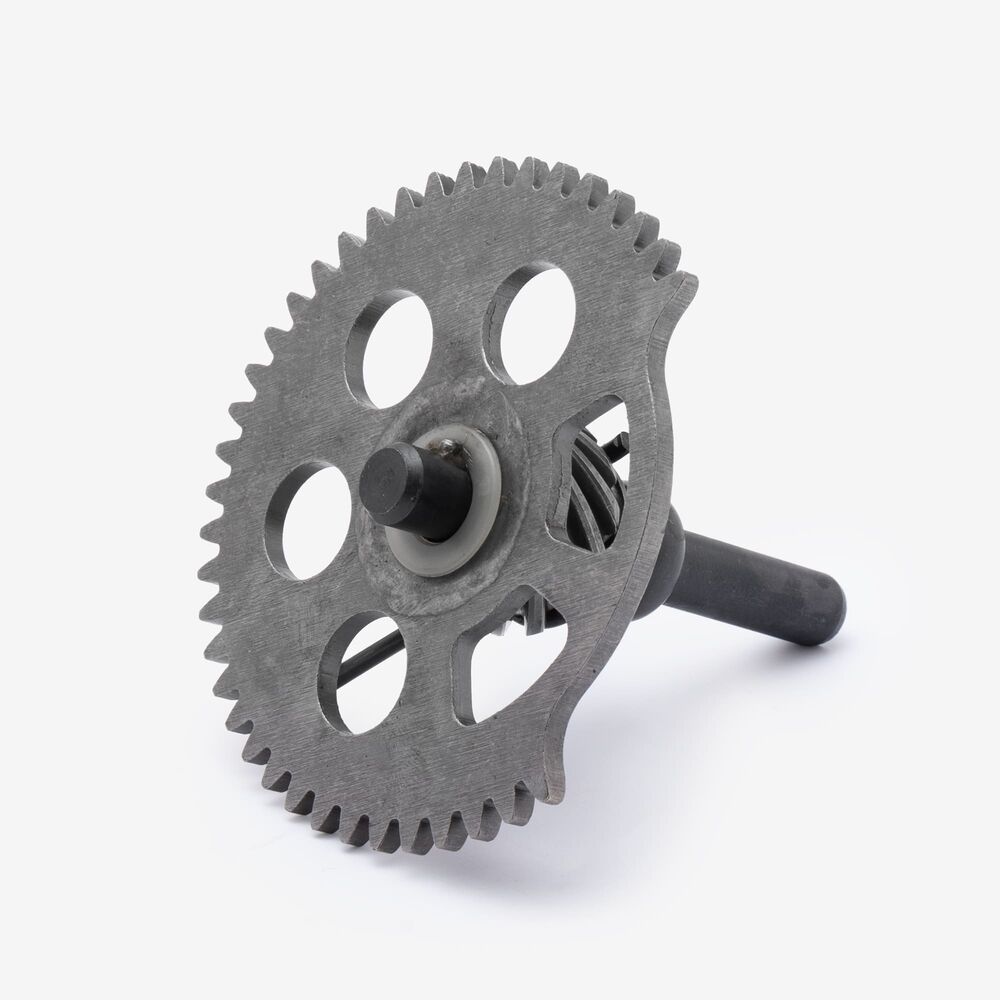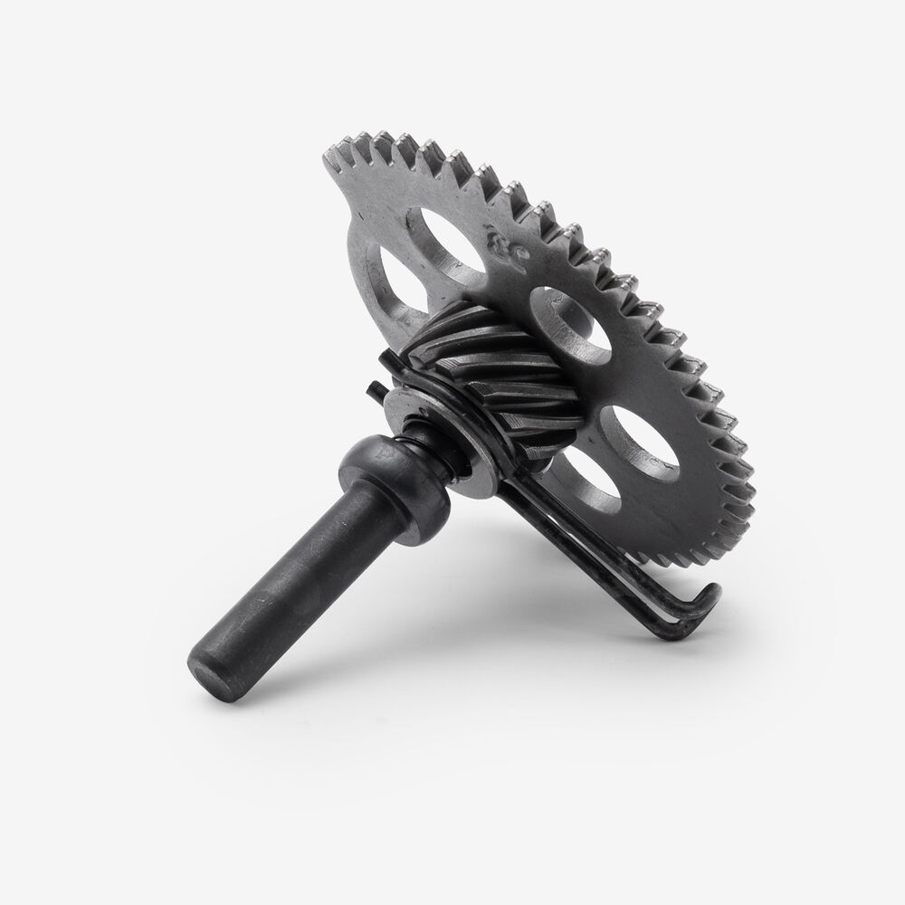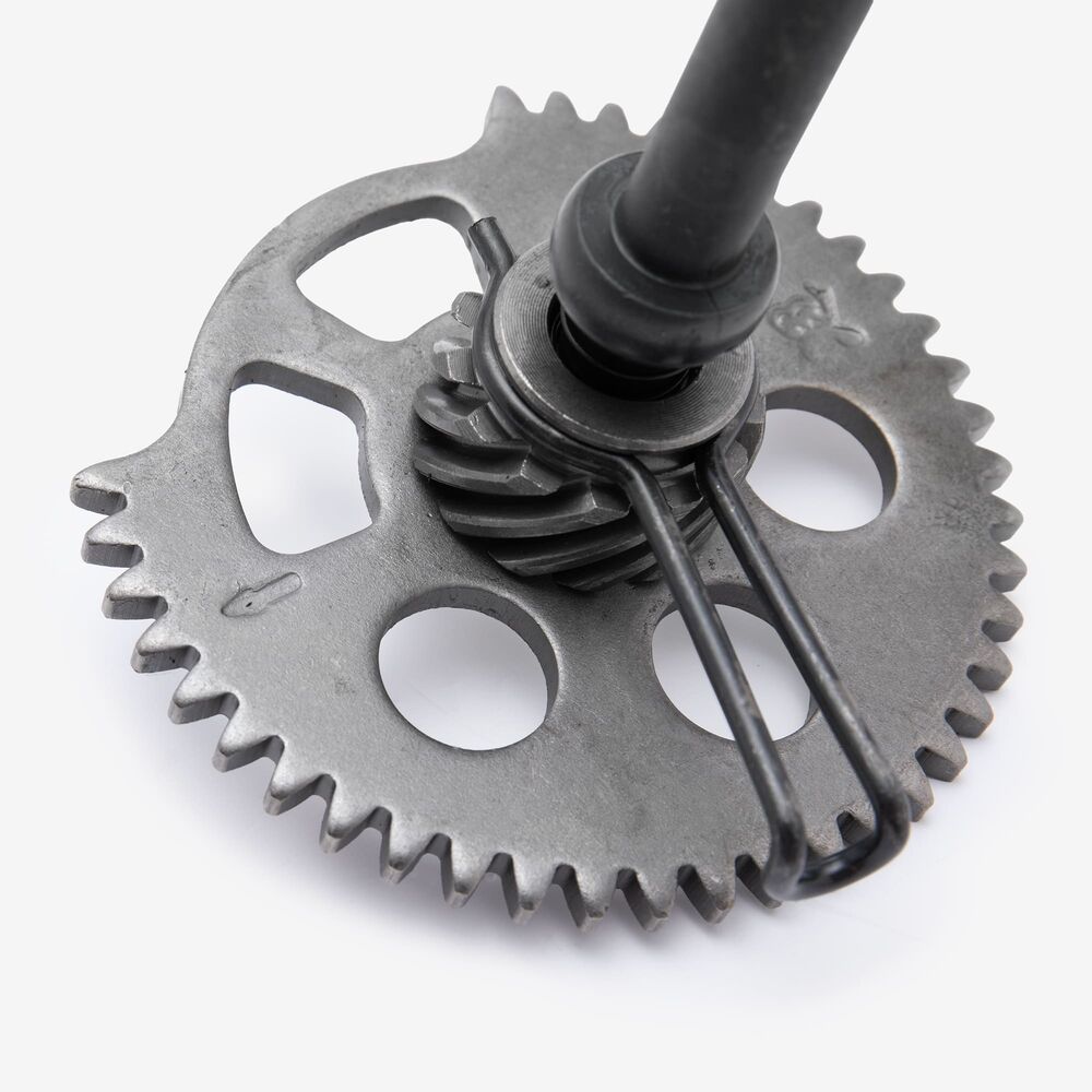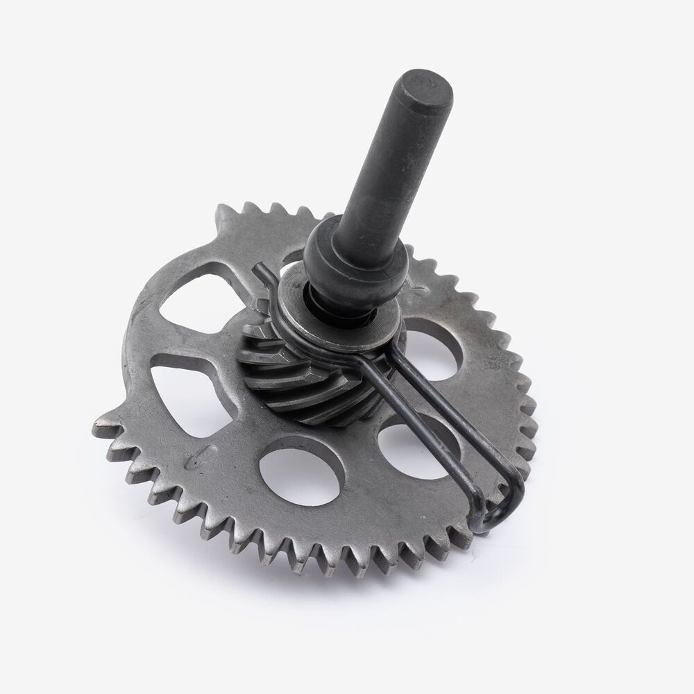 The kick start idle gear in a motorcycle engages with the kick start mechanism to facilitate the initial engine cranking.