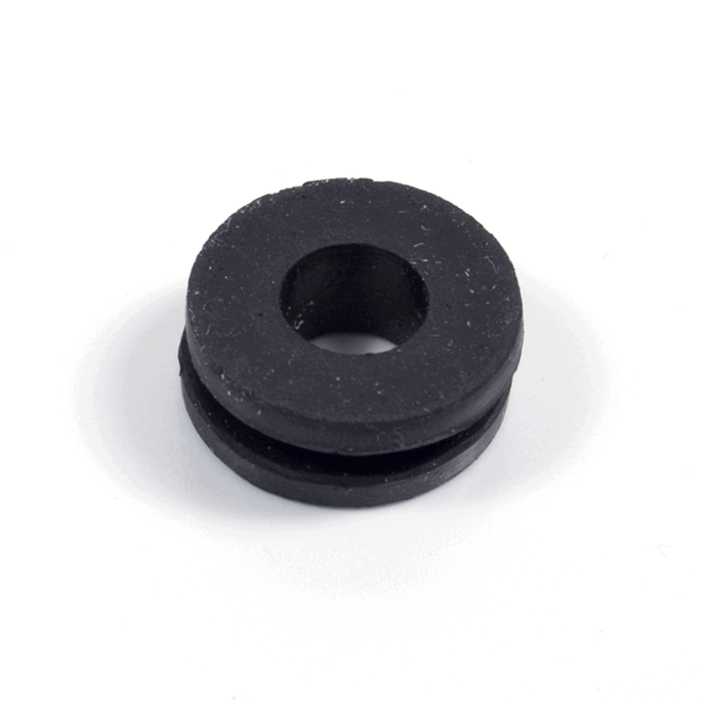 A grommet in a motorcycle is a small, often rubber or plastic, component used to protect and secure cables or wires as they pass through holes or openings, preventing abrasion and vibration damage.