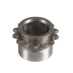 The oil pump drive gear in a motorcycle transmits rotational motion from the engine to the oil pump, ensuring proper circulation of oil for engine lubrication and cooling.
