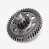 The reduction gear in a motorcycle reduces the rotational speed of the starter motor output, increasing torque to drive the crankshaft, which helps optimize performance and manage power delivery.