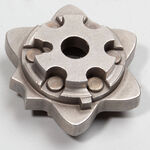 The gear selector cam in a motorcycle directs the movement of the gear selector fork or drum, facilitating precise gear engagement by translating the rotational motion of the shift lever into the correct gear positions.