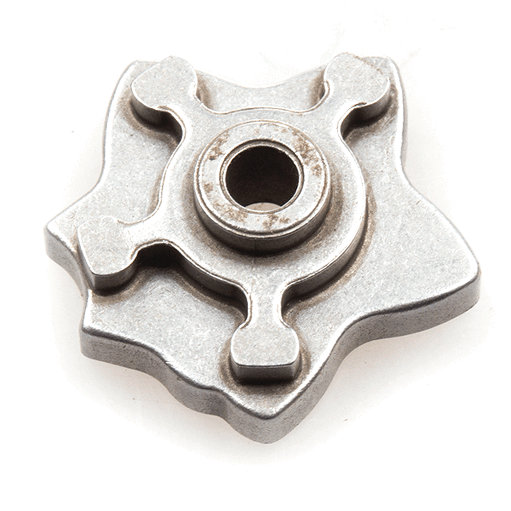 The gear selector cam in a motorcycle directs the movement of the gear selector fork or drum, facilitating precise gear engagement by translating the rotational motion of the shift lever into the correct gear positions.