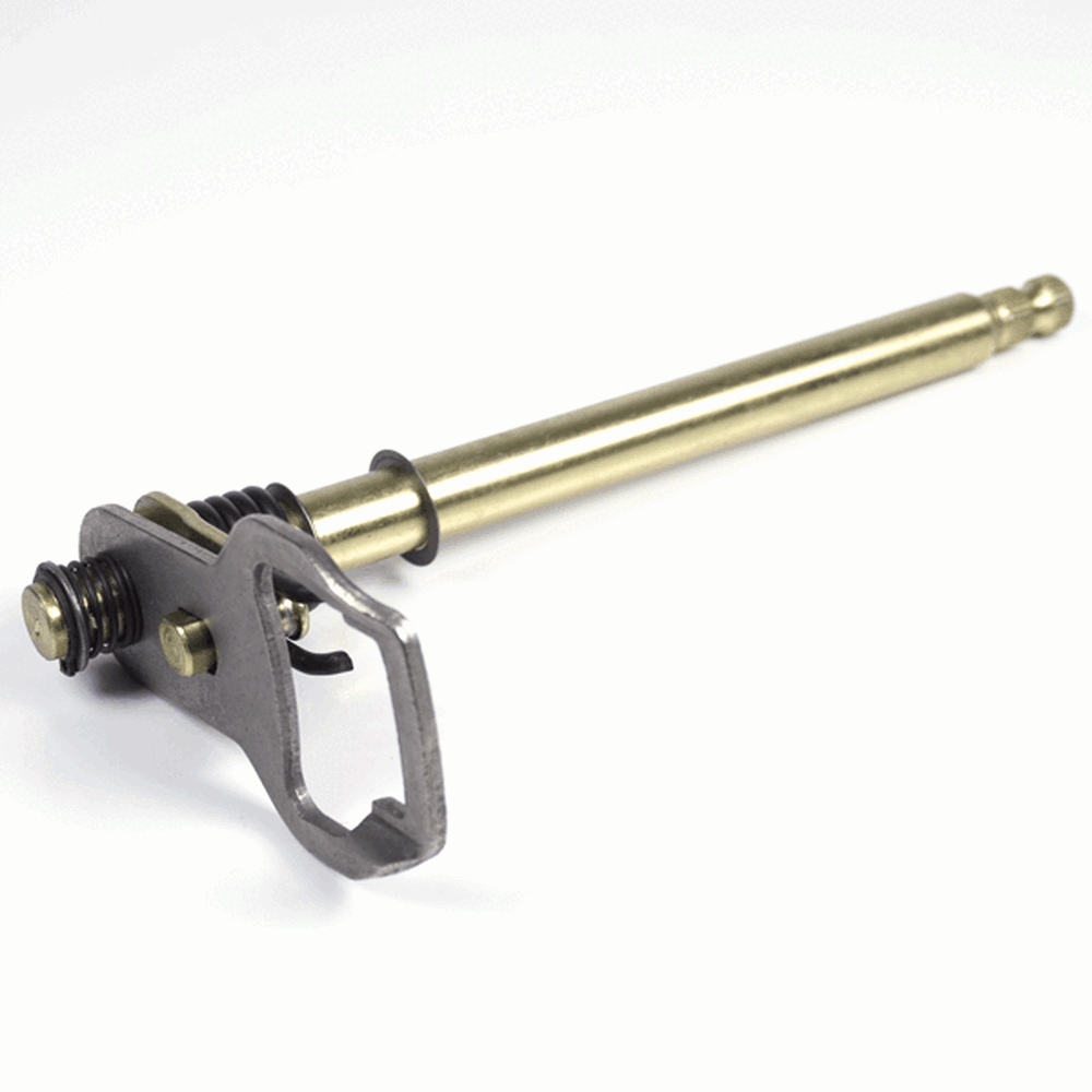 The gear selector shaft in a motorcycle transfers movement from the gear shift lever to the internal gearbox mechanism, enabling smooth and precise gear changes for optimal transmission performance.