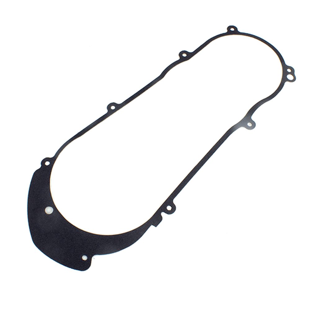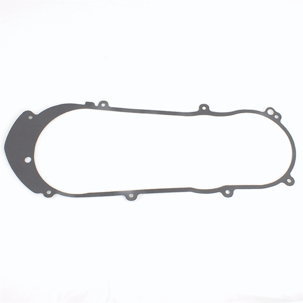 The drive belt cover gasket in a scooter seals the cover that protects the drive belt, preventing dust, dirt, and moisture from entering and ensuring the belt's longevity and smooth operation.