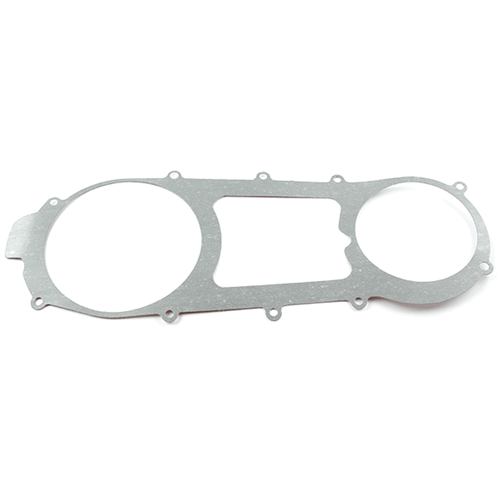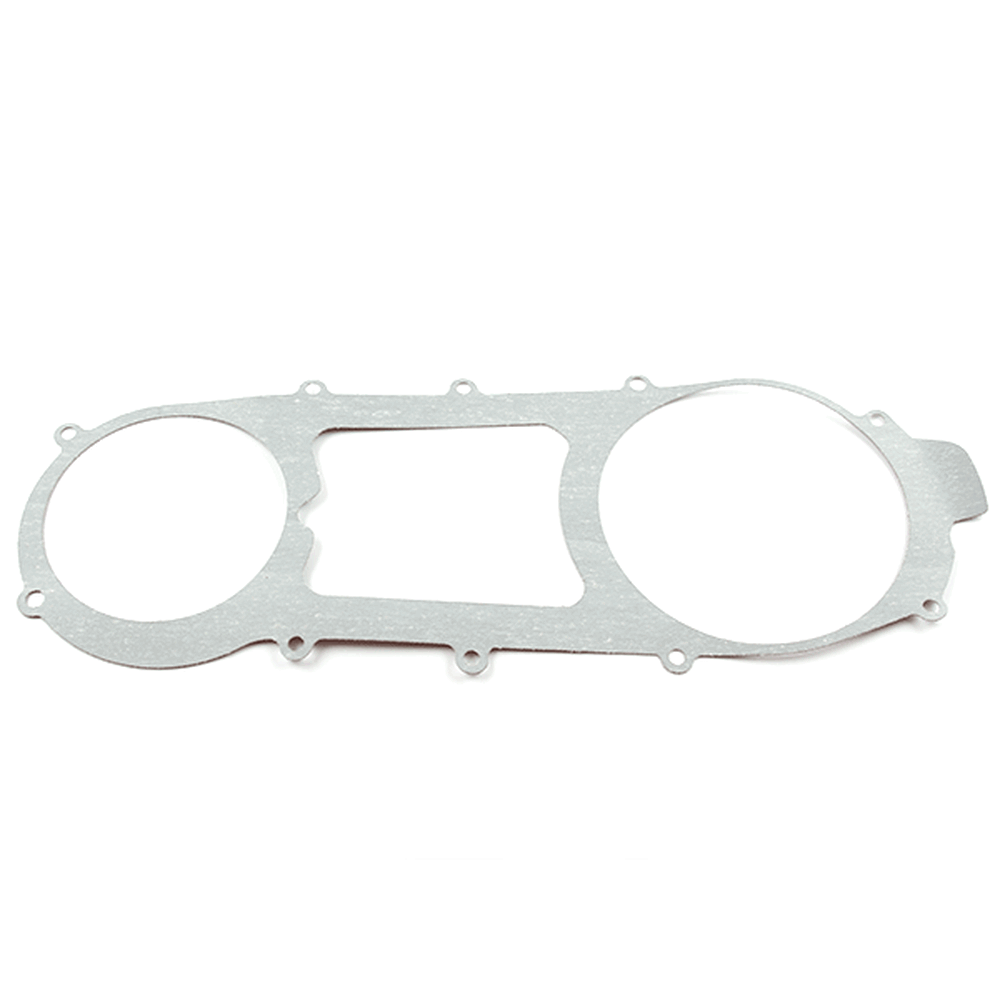 The drive belt cover gasket in a scooter seals the cover that protects the drive belt, preventing dust, dirt, and moisture from entering and ensuring the belt's longevity and smooth operation.