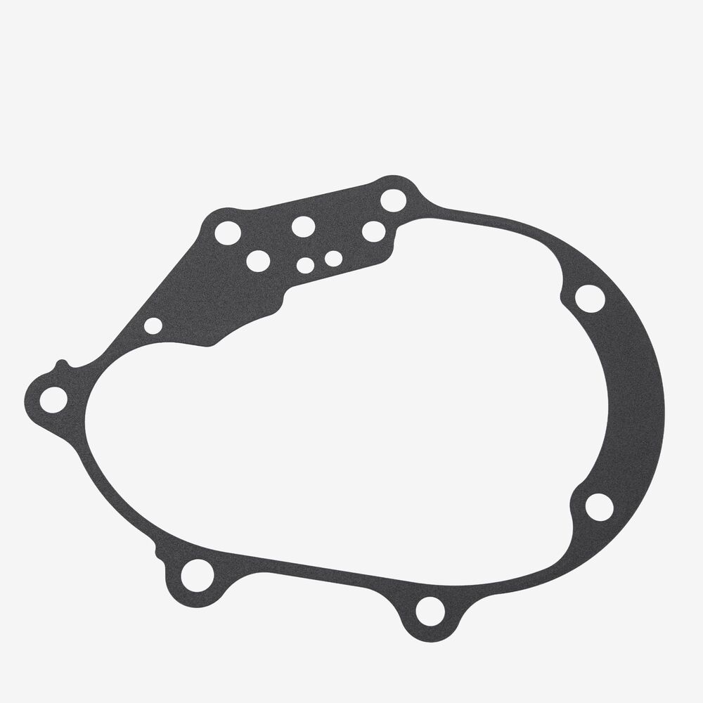The gearbox gasket in a motorcycle seals the mating surfaces of the gearbox, preventing oil leaks and ensuring proper lubrication of the gears.