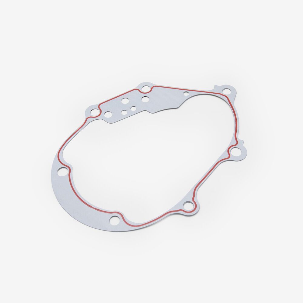 The gearbox gasket in a motorcycle seals the mating surfaces of the gearbox, preventing oil leaks and ensuring proper lubrication of the gears.