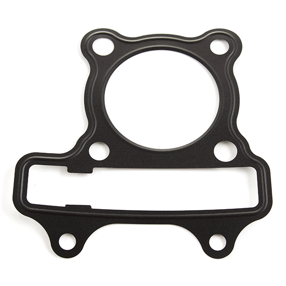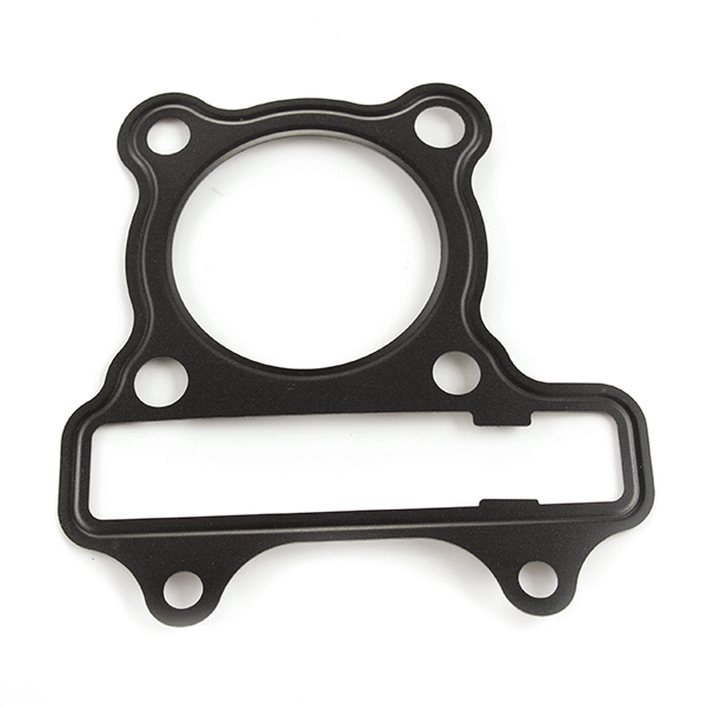 The head gasket in a motorcycle seals the engine block and cylinder head, preventing coolant and oil from mixing while maintaining compression within the combustion chamber. It is essential for engine integrity, ensuring efficient performance and preventing leaks.