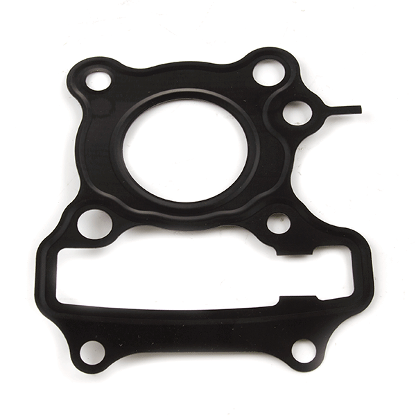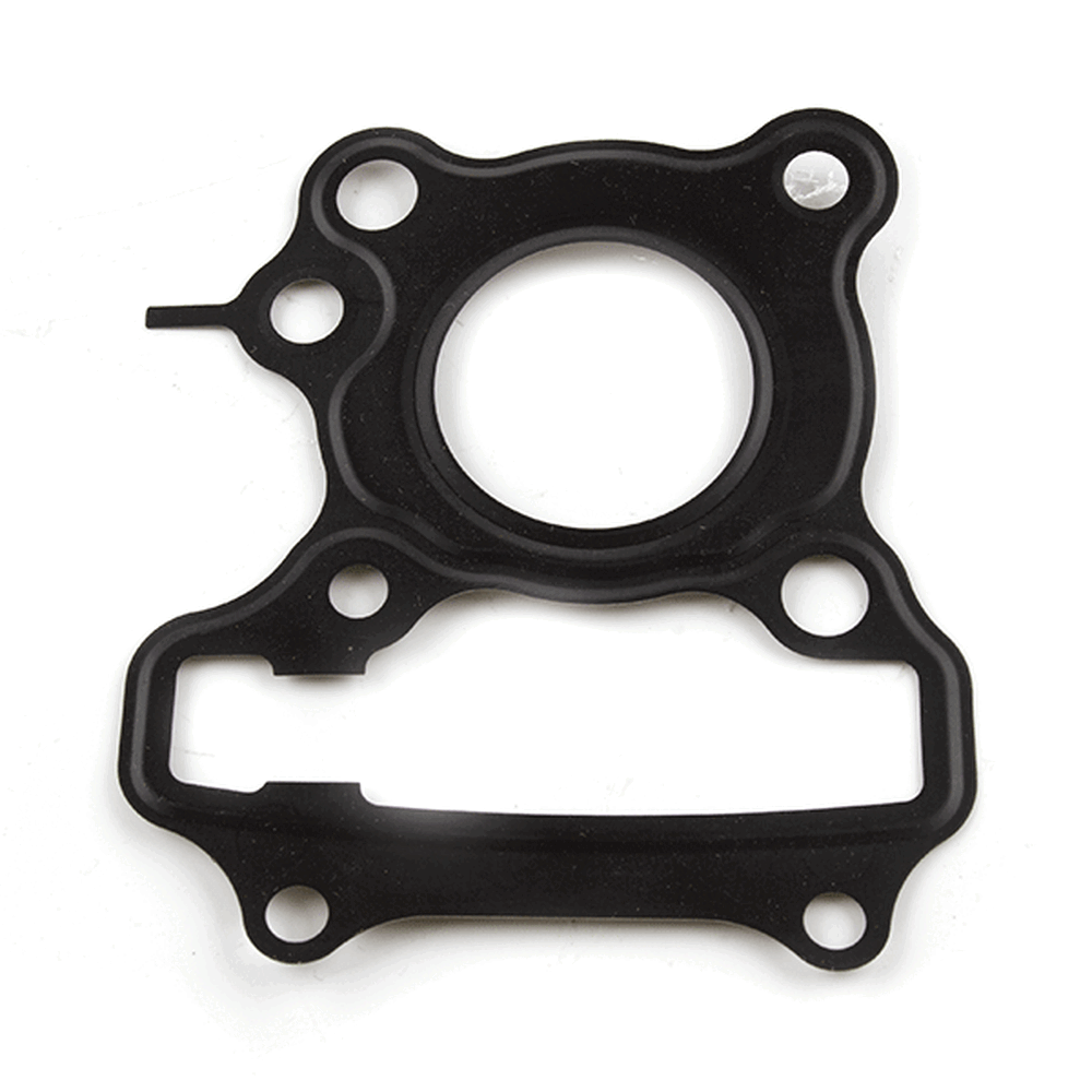 The head gasket in a motorcycle seals the engine block and cylinder head, preventing coolant and oil from mixing while maintaining compression within the combustion chamber. It is essential for engine integrity, ensuring efficient performance and preventing leaks.