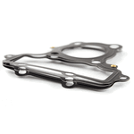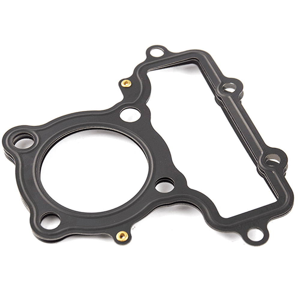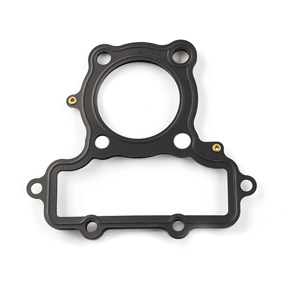 The head gasket in a motorcycle seals the engine block and cylinder head, preventing coolant and oil from mixing while maintaining compression within the combustion chamber. It is essential for engine integrity, ensuring efficient performance and preventing leaks.