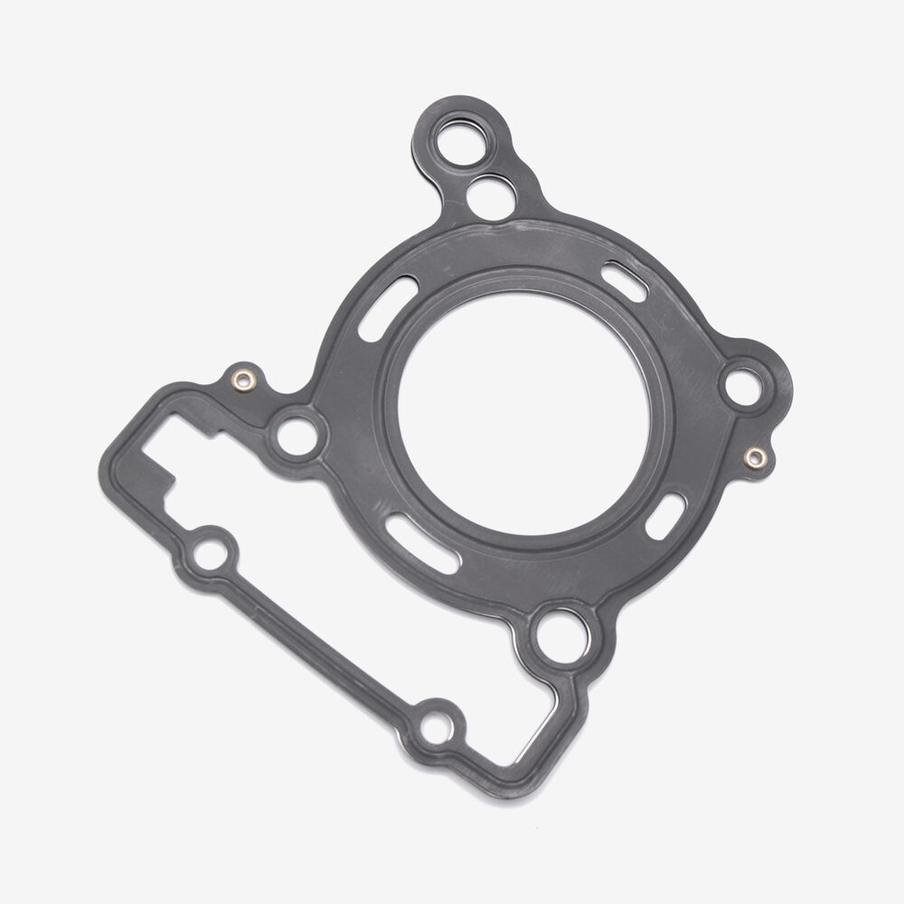 The head gasket in a motorcycle seals the engine block and cylinder head, preventing coolant and oil from mixing while maintaining compression within the combustion chamber. It is essential for engine integrity, ensuring efficient performance and preventing leaks.
