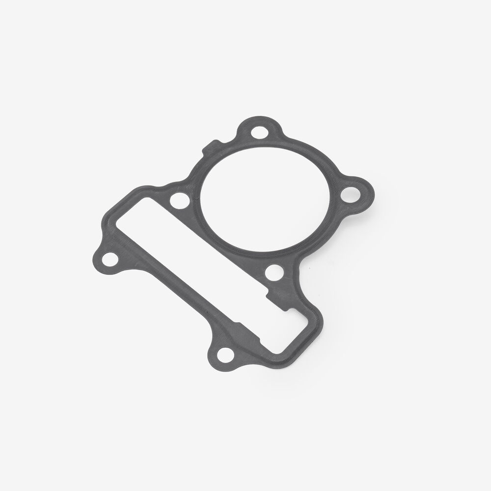 The head gasket in a motorcycle seals the engine block and cylinder head, preventing coolant and oil from mixing while maintaining compression within the combustion chamber. It is essential for engine integrity, ensuring efficient performance and preventing leaks.