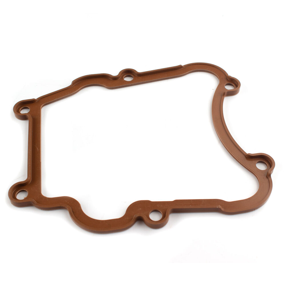 The rocker/cam cover gasket on a motorcycle seals the area between the rocker or cam cover and the engine cylinder head. It prevents oil leaks from the top of the engine, ensuring proper lubrication of the valve train and maintaining engine performance.