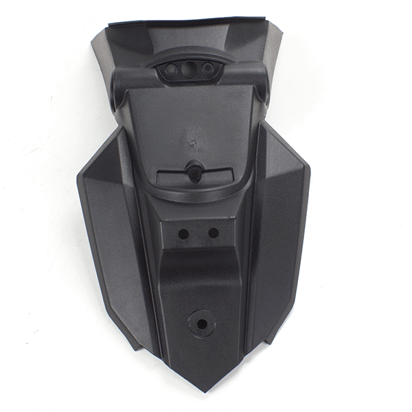 The rear hugger on a motorcycle is a protective cover mounted above the rear wheel. It shields the rear suspension and undercarriage from mud, water, and debris, reducing maintenance and enhancing the bike's appearance.