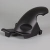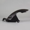 The rear hugger on a motorcycle is a protective cover mounted above the rear wheel. It shields the rear suspension and undercarriage from mud, water, and debris, reducing maintenance and enhancing the bike's appearance.