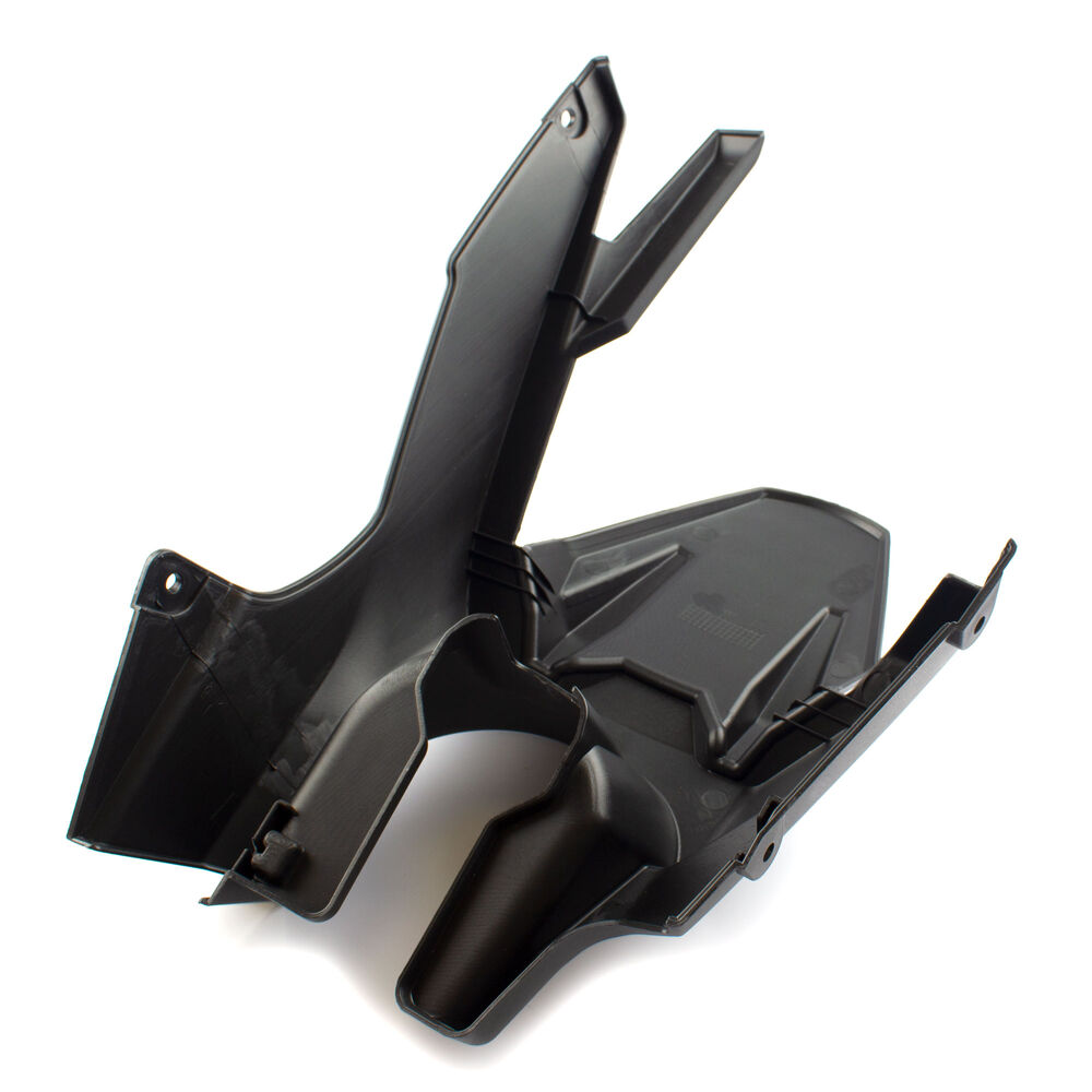 The rear hugger on a motorcycle is a protective cover mounted above the rear wheel. It shields the rear suspension and undercarriage from mud, water, and debris, reducing maintenance and enhancing the bike's appearance.