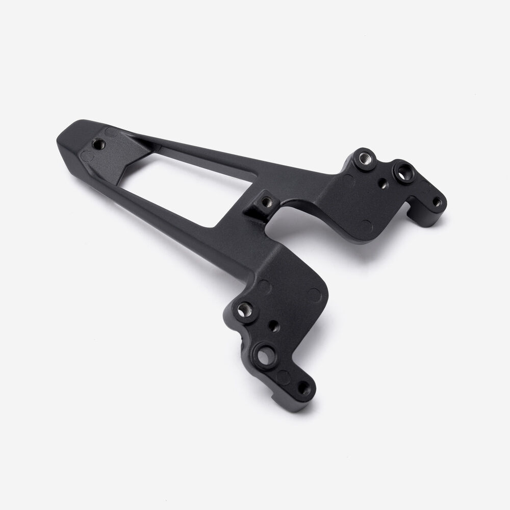 The rear hugger bracket on a motorcycle is a component that supports and secures the rear hugger, which is a protective cover over the rear wheel. The bracket helps keep the hugger in place, protecting the rear suspension and undercarriage from debris and water, and enhancing the bike's overall appearance.
