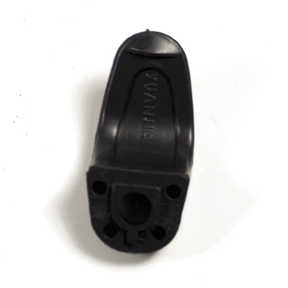 The helmet hook on a scooter is a small, typically metal, hook or loop designed to securely hold a helmet when not in use. It is usually mounted on the scooter's body or under the seat, providing a convenient place to hang the helmet and keep it safe while the rider is parked.