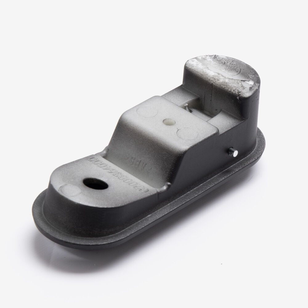 The helmet hook on a scooter is a small, typically metal, hook or loop designed to securely hold a helmet when not in use. It is usually mounted on the scooter's body or under the seat, providing a convenient place to hang the helmet and keep it safe while the rider is parked.
