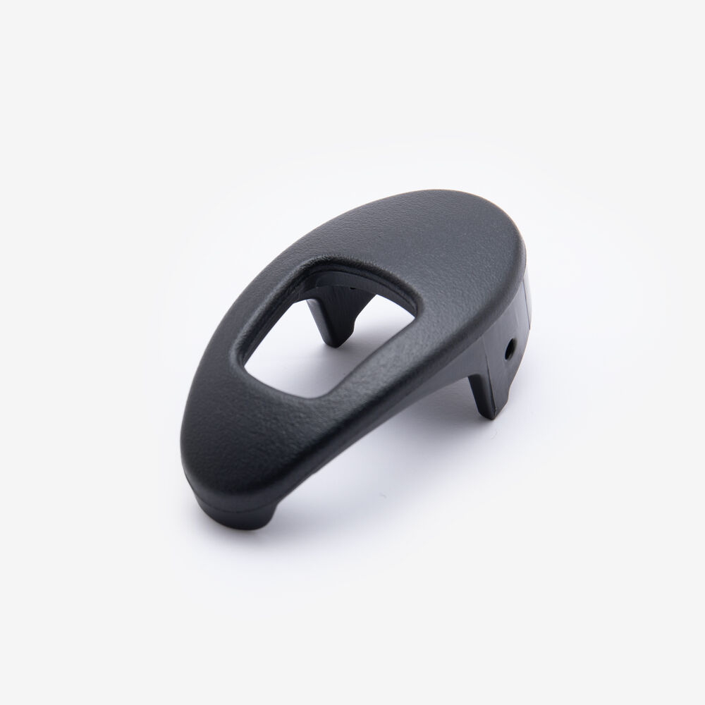 The helmet hook on a scooter is a small, typically metal, hook or loop designed to securely hold a helmet when not in use. It is usually mounted on the scooter's body or under the seat, providing a convenient place to hang the helmet and keep it safe while the rider is parked.