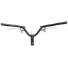 The handlebar on a motorcycle is the steering component that the rider uses to control the direction of the bike. It provides a grip and leverage for maneuvering the motorcycle and is attached to the front fork. The handlebar's design is crucial for comfort, control, and stability while riding.