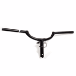 The handlebar on a motorcycle is the steering component that the rider uses to control the direction of the bike. It provides a grip and leverage for maneuvering the motorcycle and is attached to the front fork. The handlebar's design is crucial for comfort, control, and stability while riding.