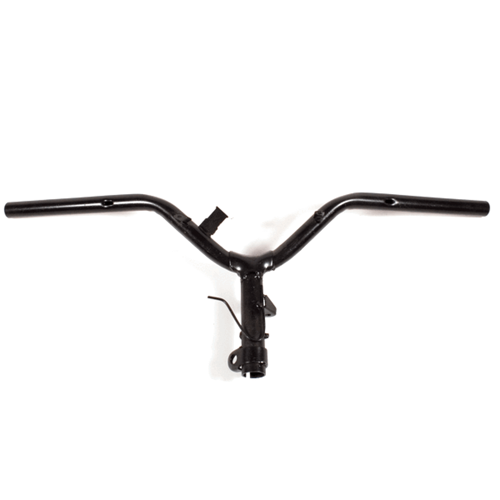 The handlebar on a motorcycle is the steering component that the rider uses to control the direction of the bike. It provides a grip and leverage for maneuvering the motorcycle and is attached to the front fork. The handlebar's design is crucial for comfort, control, and stability while riding.