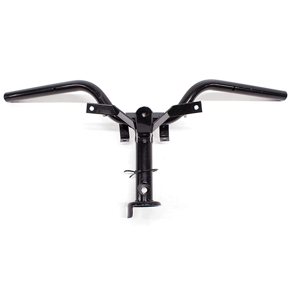 The handlebar on a motorcycle is the steering component that the rider uses to control the direction of the bike. It provides a grip and leverage for maneuvering the motorcycle and is attached to the front fork. The handlebar's design is crucial for comfort, control, and stability while riding.
