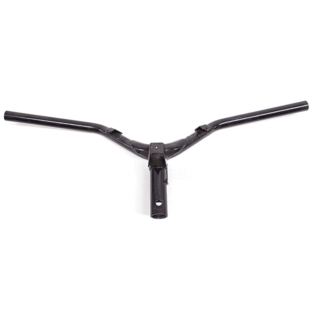 The handlebar on a motorcycle is the steering component that the rider uses to control the direction of the bike. It provides a grip and leverage for maneuvering the motorcycle and is attached to the front fork. The handlebar's design is crucial for comfort, control, and stability while riding.