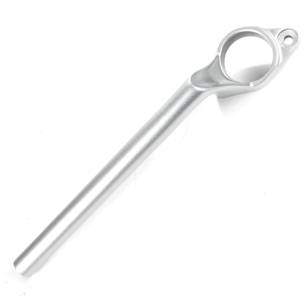 The handlebar on a motorcycle is the steering component that the rider uses to control the direction of the bike. It provides a grip and leverage for maneuvering the motorcycle and is attached to the front fork. The handlebar's design is crucial for comfort, control, and stability while riding.