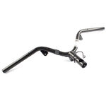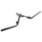 The handlebar on a motorcycle is the steering component that the rider uses to control the direction of the bike. It provides a grip and leverage for maneuvering the motorcycle and is attached to the front fork. The handlebar's design is crucial for comfort, control, and stability while riding.
