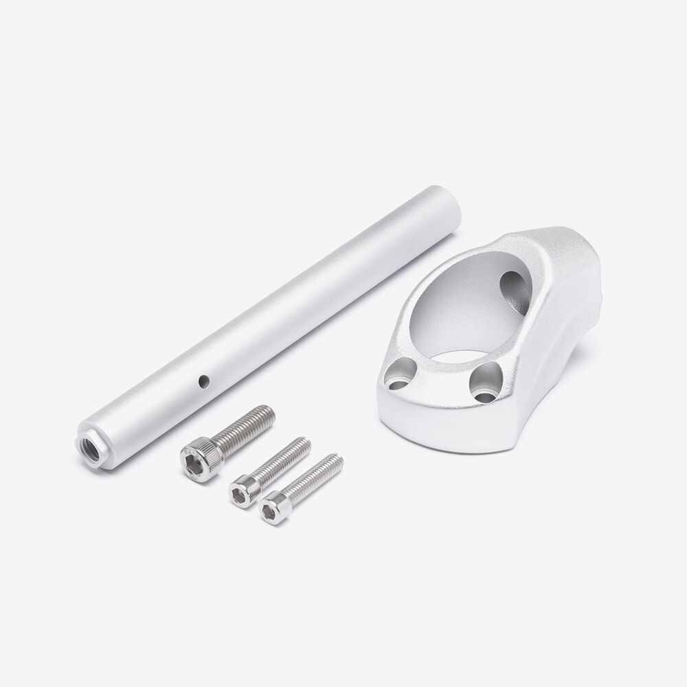 The handlebar on a motorcycle is the steering component that the rider uses to control the direction of the bike. It provides a grip and leverage for maneuvering the motorcycle and is attached to the front fork. The handlebar's design is crucial for comfort, control, and stability while riding.