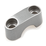 The handlebar clamp on a motorcycle is a component that secures the handlebars to the motorcycle's fork or triple tree. It ensures the handlebars are firmly attached and properly aligned, providing stability and control during riding.