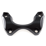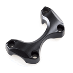 The handlebar clamp on a motorcycle is a component that secures the handlebars to the motorcycle's fork or triple tree. It ensures the handlebars are firmly attached and properly aligned, providing stability and control during riding.