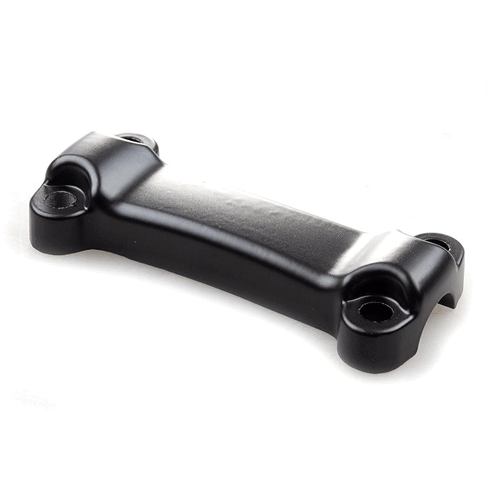 The handlebar clamp on a motorcycle is a component that secures the handlebars to the motorcycle's fork or triple tree. It ensures the handlebars are firmly attached and properly aligned, providing stability and control during riding.