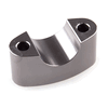 The handlebar clamp on a motorcycle is a component that secures the handlebars to the motorcycle's fork or triple tree. It ensures the handlebars are firmly attached and properly aligned, providing stability and control during riding.