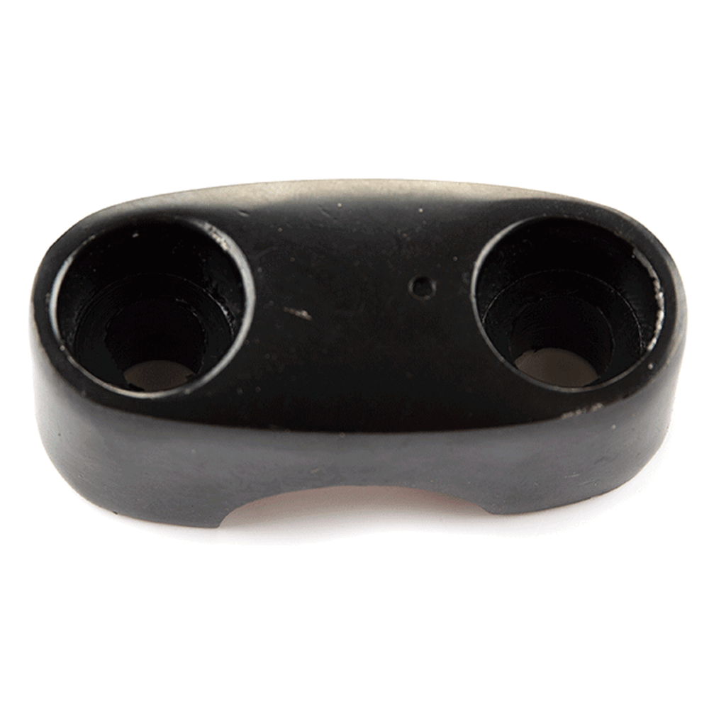 The handlebar clamp on a motorcycle is a component that secures the handlebars to the motorcycle's fork or triple tree. It ensures the handlebars are firmly attached and properly aligned, providing stability and control during riding.