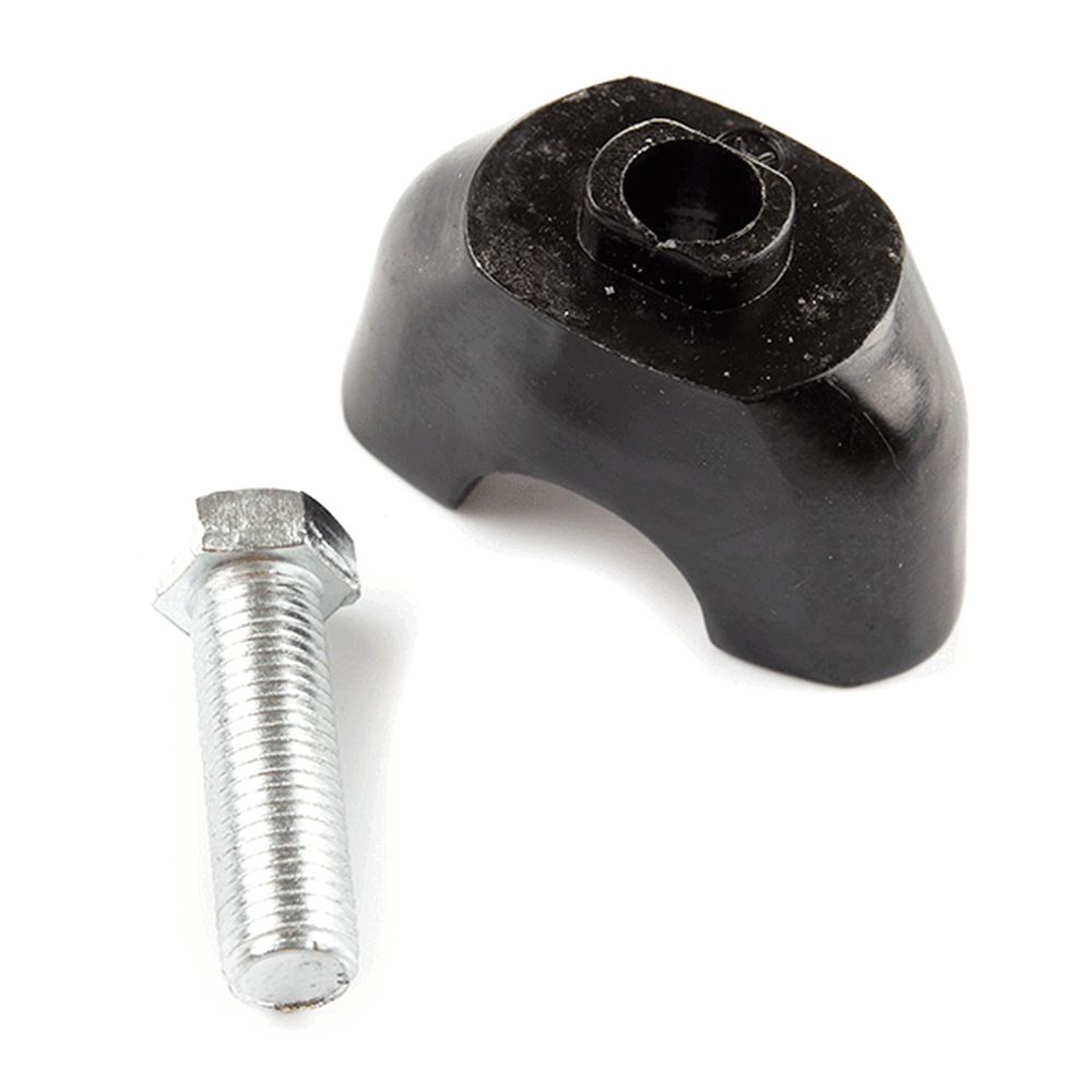 The handlebar clamp on a motorcycle is a component that secures the handlebars to the motorcycle's fork or triple tree. It ensures the handlebars are firmly attached and properly aligned, providing stability and control during riding.