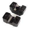 The handlebar clamp on a motorcycle is a component that secures the handlebars to the motorcycle's fork or triple tree. It ensures the handlebars are firmly attached and properly aligned, providing stability and control during riding.