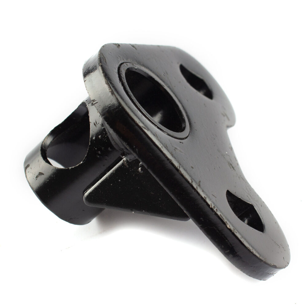 The handlebar clamp on a motorcycle is a component that secures the handlebars to the motorcycle's fork or triple tree. It ensures the handlebars are firmly attached and properly aligned, providing stability and control during riding.