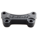 The handlebar clamp on a motorcycle is a component that secures the handlebars to the motorcycle's fork or triple tree. It ensures the handlebars are firmly attached and properly aligned, providing stability and control during riding.