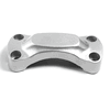 The handlebar clamp on a motorcycle is a component that secures the handlebars to the motorcycle's fork or triple tree. It ensures the handlebars are firmly attached and properly aligned, providing stability and control during riding.