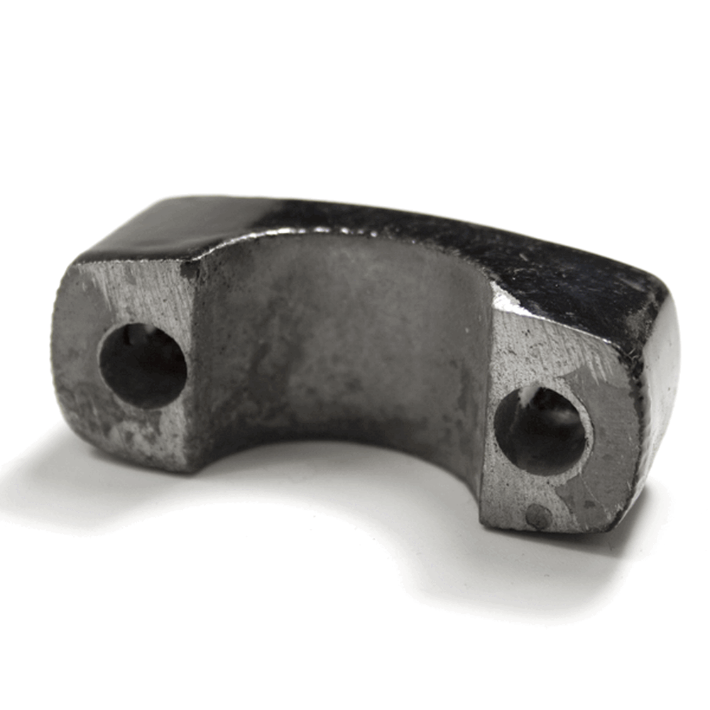 The handlebar clamp on a motorcycle is a component that secures the handlebars to the motorcycle's fork or triple tree. It ensures the handlebars are firmly attached and properly aligned, providing stability and control during riding.