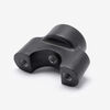 The handlebar clamp on a motorcycle is a component that secures the handlebars to the motorcycle's fork or triple tree. It ensures the handlebars are firmly attached and properly aligned, providing stability and control during riding.